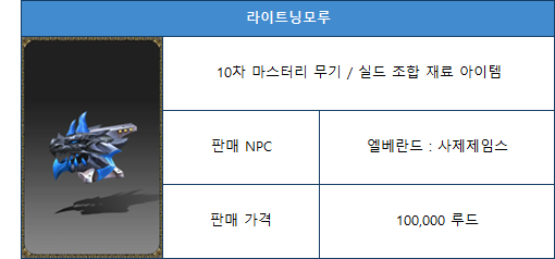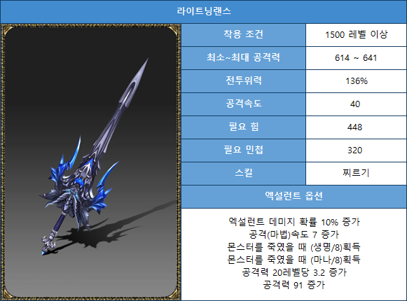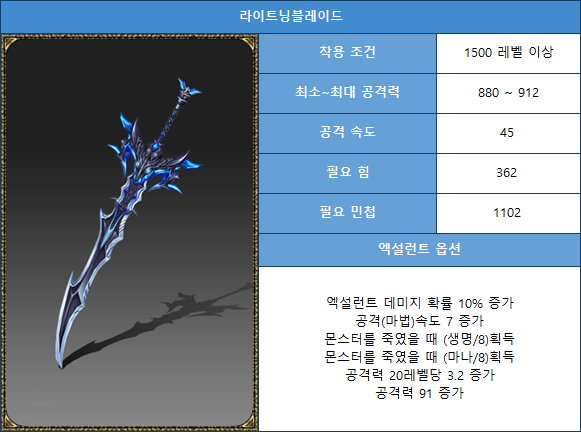 2. Lightning Weapon/Shield Item Information