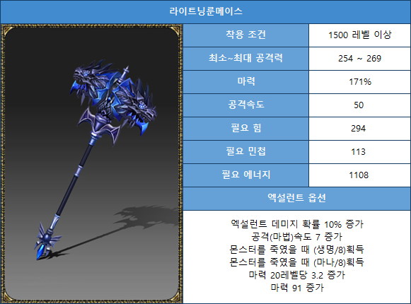 100% | Level 0, Option 0 Lightning Weapon [Maintains Luck and Excellent Options] |